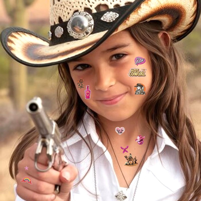 - Wild West Vibes: A must-have for any cowgirl-themed event, these cute tattoos are a hit at birthday parties, baby showers, or as unique Western party decorations!
