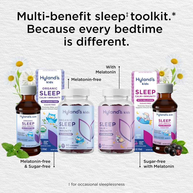 Hyland's Kids Melatonin Free Organic Sleep Aid Gummies with Calm & Immune Support - with Vitamin C, Zinc, Elderberry, Lemon Balm & Chamomile, Helps with Sleeplessness & Restlessness, 60 Vegan Gummies