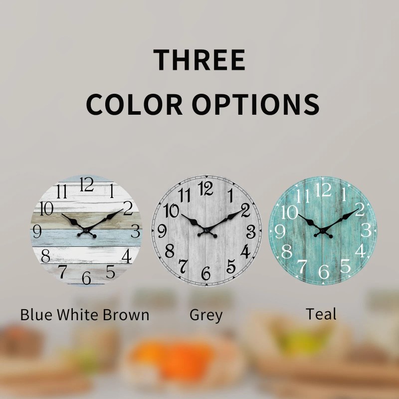 HYLANDA Wall Clock, Rustic Wall Clocks Battery Operated Silent Non Ticking, C