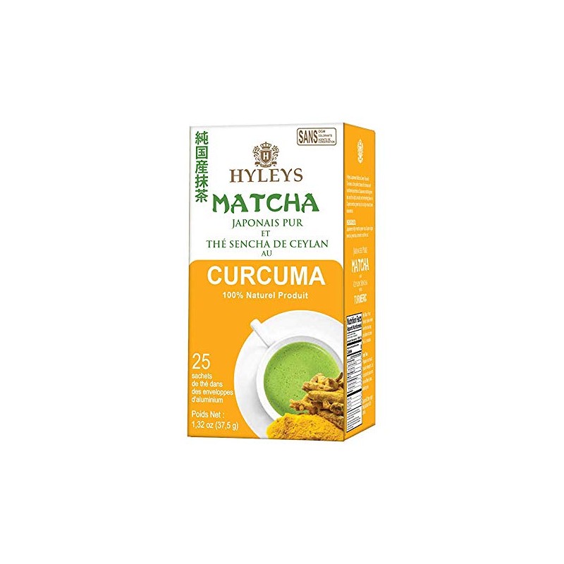 HYLEYS Tea Japanese Pure Matcha and Ceylon Sencha with Turmeric, 1.32 Ounces