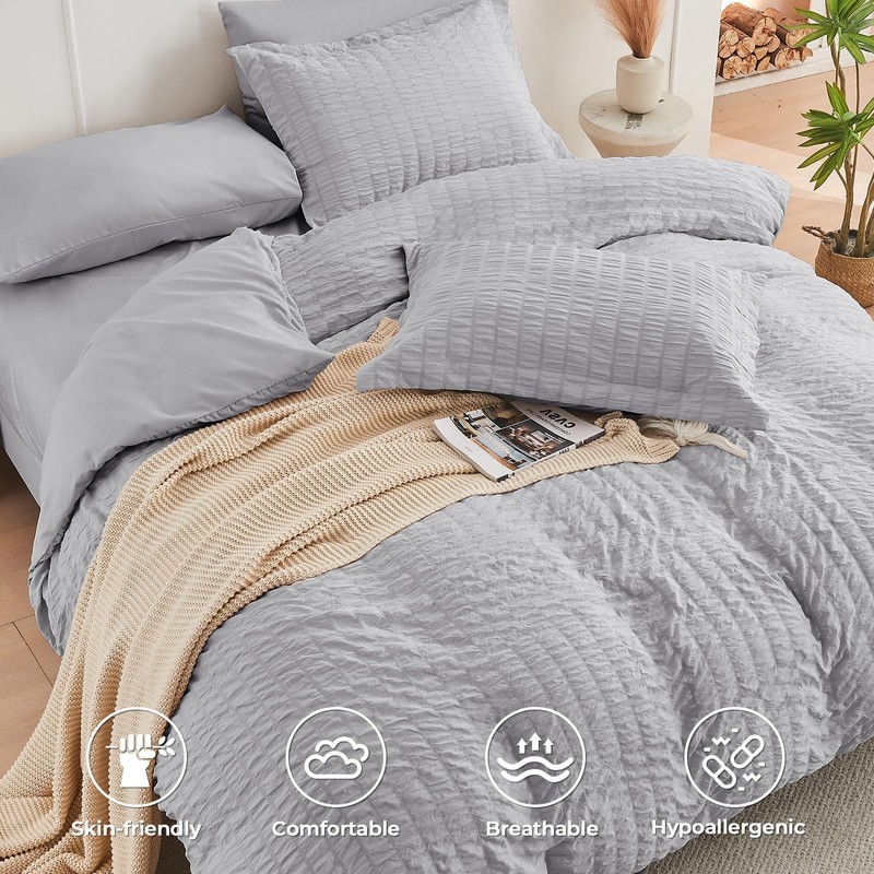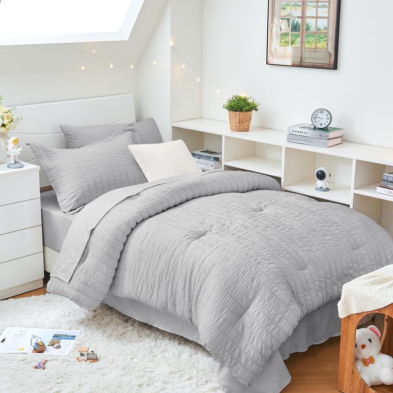 HYMOKEGE HYMOKEGE Light Grey Twin XL Comforter Set Seersucker 5 Pieces, All Season Luxury Bed in a Bag for Bedroom, Bedding Set with Comforter, Sheets, Pillowcase & Sham