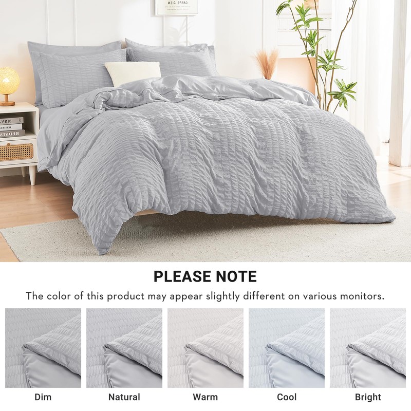 - Anti-Wrinkle Textured Design: Unlike traditional, plain duvet covers, our slightly pleated seersucker texture is both beautiful and delicate; creates a vivid three-dimensional wavy pattern; the striped texture enhances this design, which is wrinkle-resistant and easy to care for; the gentle seersucker queen bedding set adds a unique sense of romance and elegance to your room