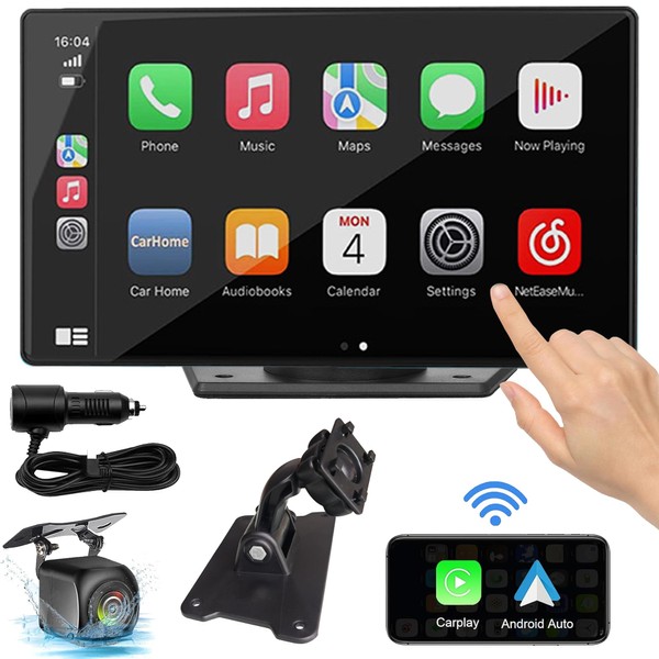 - 【Easy to install & intuitive interface】This Apple CarPlay screen is simple to install without the need to dismantle the car. Just attach the screen and solid base with 3M adhesive on the dashboard. The 7-inch touch screen android auto carplay offers an intuitive interface with a Full HD IPS display, allowing for easy navigation and clear visibility even in sunlight. Suitable for all kinds of cars, such as RVs, trucks, SUVs and pickup trucks.