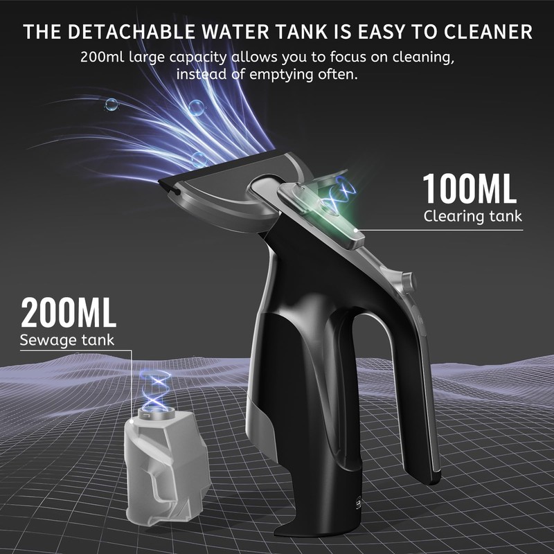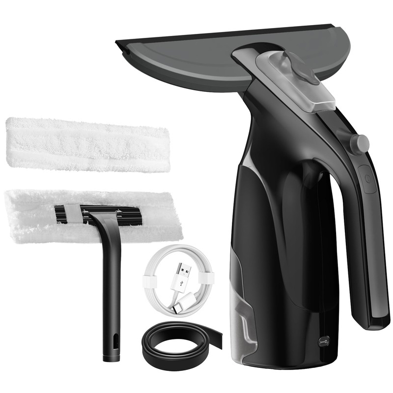 • --   - Our window cleaner tool has an in-built sprayer with a 100ml capacity. Spray, then wipe away dirt and stains with the microfiber pad , and finish by vacuuming up the dirty water with the window vac without any streaks or drips left. (The microfiber cloth is removable for easy cleaning.)