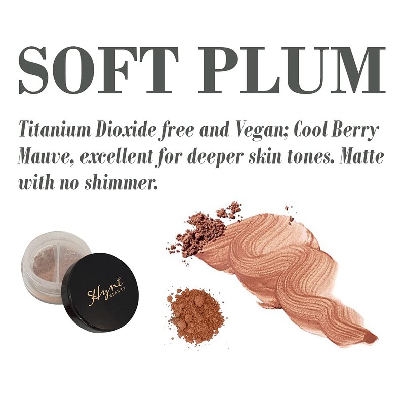 - SOFT PLUM : Titanium Dioxide free and Vegan, this blush shade is great for lighter skin tones. Adds sheer, shimmer-free color to the cheeks. Subtle, sophisticated and beautiful.