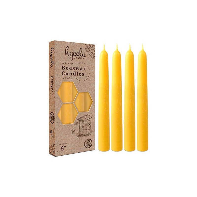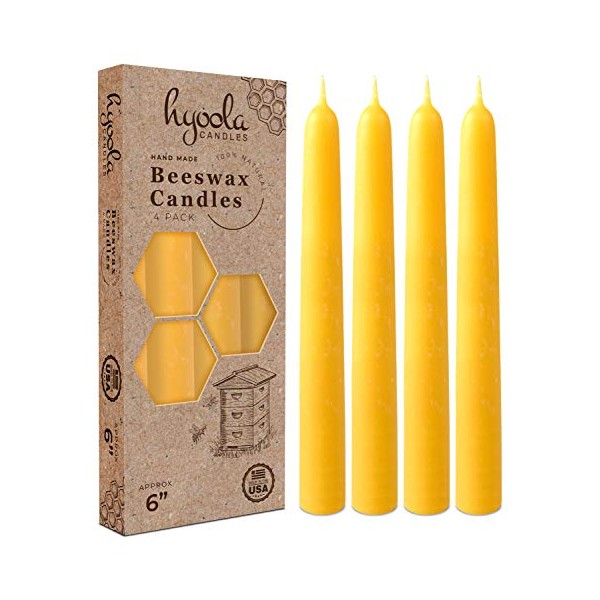 Hyoola 6" Beeswax Taper Candles - 6 Hour Burn Time - Yellow Beeswax Candles - 4 Pack