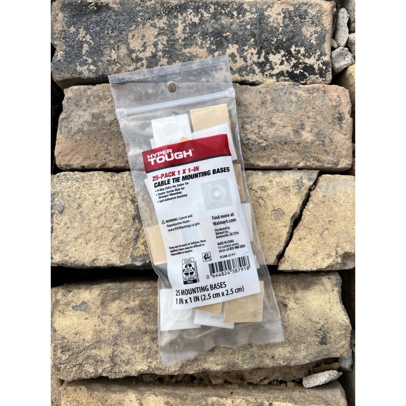 • Hyper Tough 1" x 1" Cable Tie Mounting Bases, Natural, 25 Count