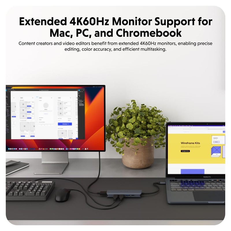 - Extended 4K60Hz Monitor Support for Mac, PC, and Chromebook Enhance your productivity and multitasking capabilities by providing a spacious and immersive workspace, allowing users to simultaneously view and work on multiple high-resolution content, such as videos, images, documents, and applications, with smooth and crisp visuals.