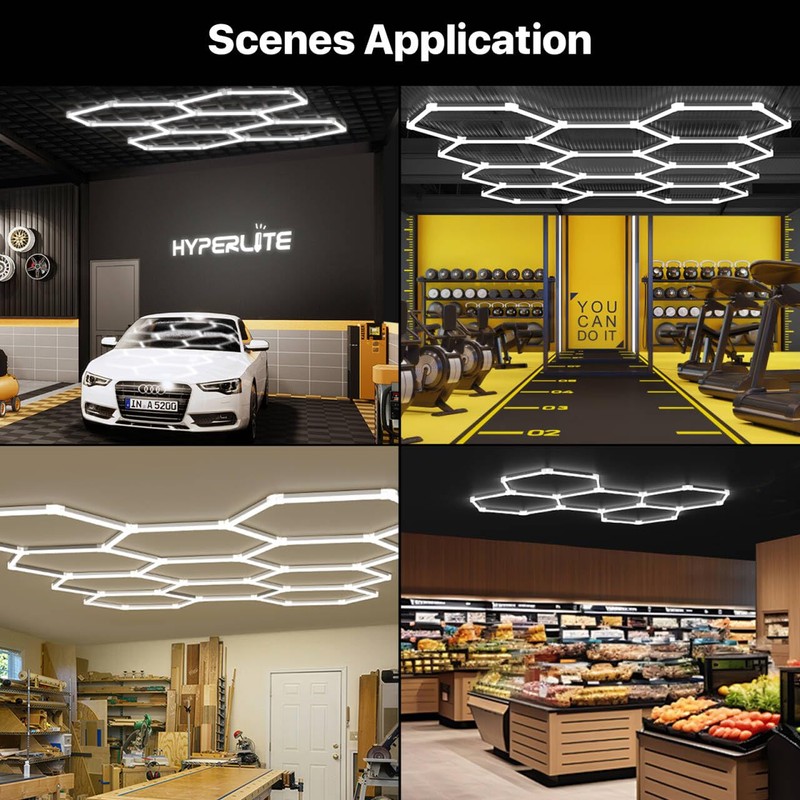 - DIY Hexagon Led Lights: The honeycomb shape formed by splicing light tubes evenly illuminates every corner, making it the excellent choice for upgrading or adding garage lighting systems. You can create an ideal lighting style by purchasing multiple hex lights. Tipes: Each specification includes a fixed number of connectors; if you need additional connectors for DIY, please purchase the HYPERLITE hexagon lights connectors.