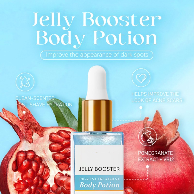 - Key Ingredient: Jelly Booster pigment serum is an advanced formula of pomegranate extract and vitamin B12 to boost collagen production,spur skin cell regeneration and improve the appearance of dark spots,hyperpigmentation,and acne scars.