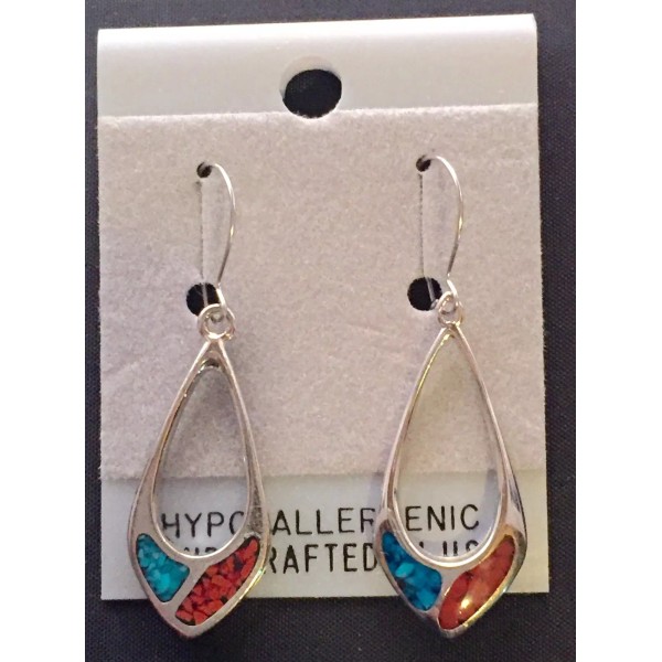 Hypo-allergenic pierced earrings. Mosaic chips. Hand crafted in USA. Measures approx. 1 5/8". NOTE: I have a total of 10 currently. Upon purchase, I will send you a picture of entire lot and you can pick the earring or earrings that you want. These are handcrafted and all will be slightly different Please view pictures closely and ask questions before bidding. We are always happy to combine shipping on multiple purchases.
