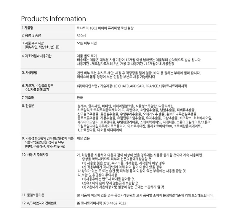 저자극 베이비 퓨리파잉 로션 블랑 320ml