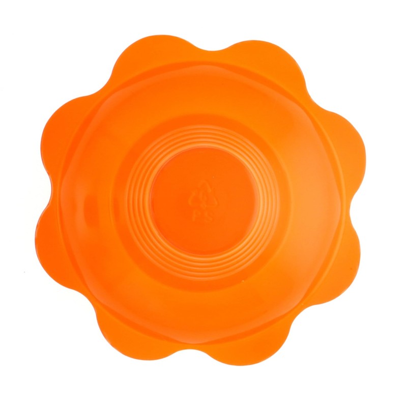 Medium size shaved ice or sno cone flower cups. Package contains 250 medium (8 ounce) size flower cups. All orange. Each cup measures 6 1/2 inches diameter by 4 inches in height.