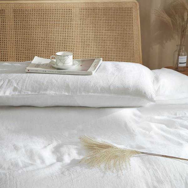 HYPREST 100% French Linen White Body Pillow Cover, Stone Washed Flax Linen Body Pillow Cover 20x54, Super Soft Breathable Cooling Moisture-Absorbing Bed Pillow Cover Envelope Design