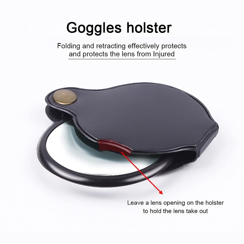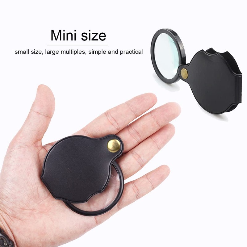 - ▶【Pocket Magnifier】: can rotate 360°,The sturdy frame and comfortable leather protection can protect the magnifying glass. You can carry this mini magnifier with you without worrying about it being broken or worn.