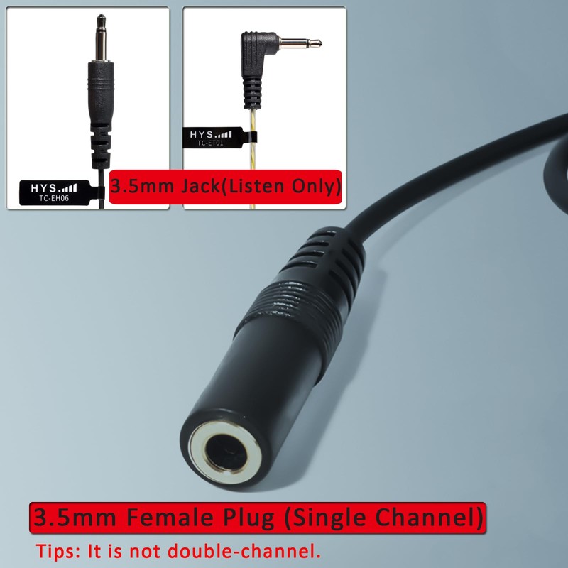 - 3.5mm Female Plug (Single channel) working for most 3.5mm Jack(male) Earpiece, such as HYS Surveillance, G Shape, C Shape Listen Only Earpiece.