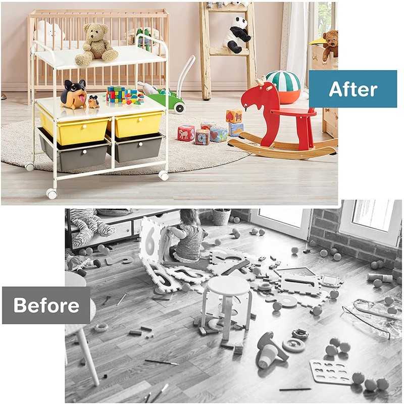 • 【Eye-catching Look & Versatile Use】This multifunctional trolley cart can be used for keeping home office supplies, organizing cosmetics, storing arts and crafts supplies, and arranging tools. With simple yet stylish look, this storage organizer easily blends into any home decor and perfectly fits anywhere, ideal for living room, kitchen, garage, office, classroom, etc.
