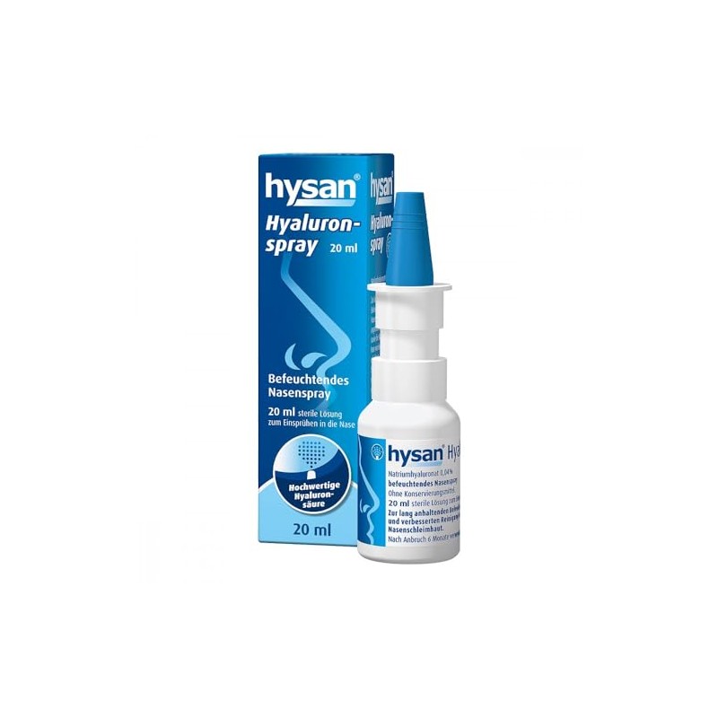 hysan Hyaluronspray PZN: 13947008 Inhalt: 20ml hysan Hyaluronspray Intensiv befeuchten, Sch?den verhindern. Zur langanhaltenden Befeuchtung der Nasenschleimhaut. Isotonische, sterile L?sung ohne Konservierungsmittel zum Einsprhen in die Nase Fr die Befeuchtung der Nase ist kaum eine Substanz so gut geeignet wie die natrliche?Hyalurons?ure. Diese k?rpereigene Substanz kann immense Mengen an Wasser binden und haftet hervorragend an der Nasenschleimhaut. So wird eine effektive und langanhaltende Befeuchtung sichergestellt. Die in hysan Hyaluronspray enthaltene Hyalurons?ure schtzt gro?e Nasen. In hysan Hyalurontropfen kmmert sie sich speziell um kleine Babynasen. mit natrlicher, feuchtigkeitsspendender Hyalurons?ure erh?ltlich als Nasenspray fr Erwachsene und Nasentropfen fr Babys und Kleinkinder konservierungsmittelfrei und damit besonders sanft zu kleinen Kinder- und Babynasen Wie wendet man hysan Hyaluronspray an? Die Sprh?ffnung in das Nasenloch einfhren und einmal pumpen, dabei leicht einatmen. Je nach Bedarf mehrmals t?glich 1-2 Sprhst??e in jedes Nasenloch einsprhen. Aus hygienischen Grnden bitte den Nasenadapter nach jeder Anwendung abwischen und mit der Schutzkappe verschlie?en. Zusammensetzung: 1 ml hysan Hyaluronspray enth?lt 0,4 mg Natriumhyaluronat, Natriumdihydrogenphosphat x 2 H2O, Natriummonohydrogenphosphat x 12 H2O, Natriumchlorid und Wasser fr Injektionszwecke. Wirkstoffe: Hyalurons?ure, Natriumsalz Informationen zum Hersteller: URSAPHARM Arzneimittel GmbH Industriestra?e 35 66129 Saarbrcken