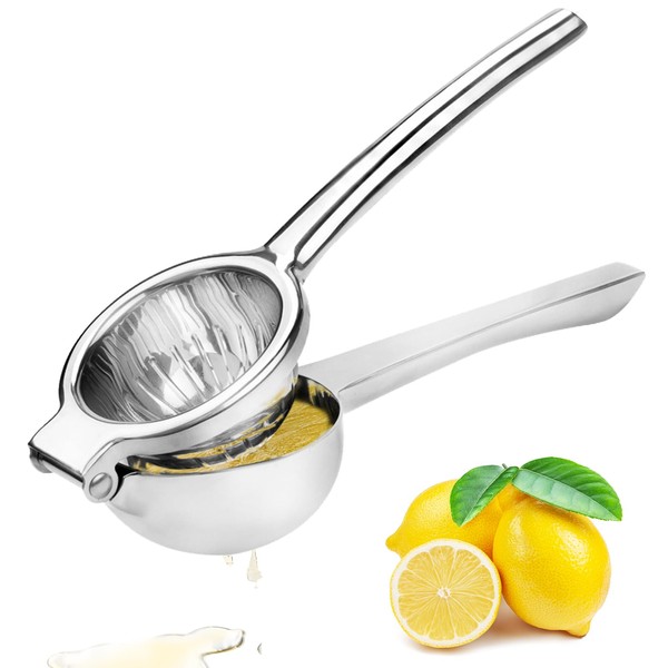 - Cooking assistant: the stainless steel lemon squeezer is ergonomically designed and can be easily squeezed out by both adults and children. Lemon squeezer hand press. The thickened handle and the bearings do not bend and the grooves can squeeze out 100% of the juice, making it a good companion when cooking