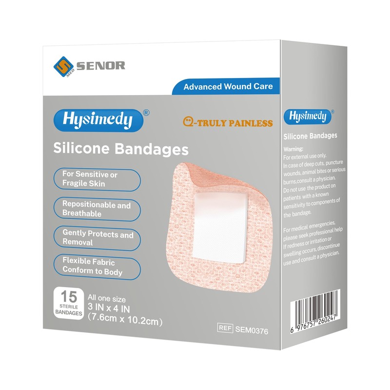 Hysimedy Silicone Adhesive Bandages Extra Large Size for Sensitive Fragile Skin 3"x4" 15 Counts Flexible Fabric Latex Free Hypoallergenic Breathable Bandages for Adhesive Allergy Wounds