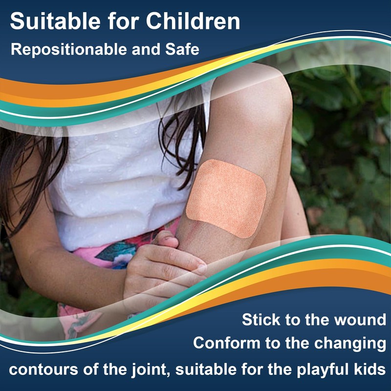 - Design for the Kids: It doesn't leave the sticky residue on kids or baby. Large bandages are easy to apply and are soft and bendable. It conforms to the changing contours of the joint, which is suitable for the playful kids. The bandage can be lifted repeatedly to inspect or re-treat the wound