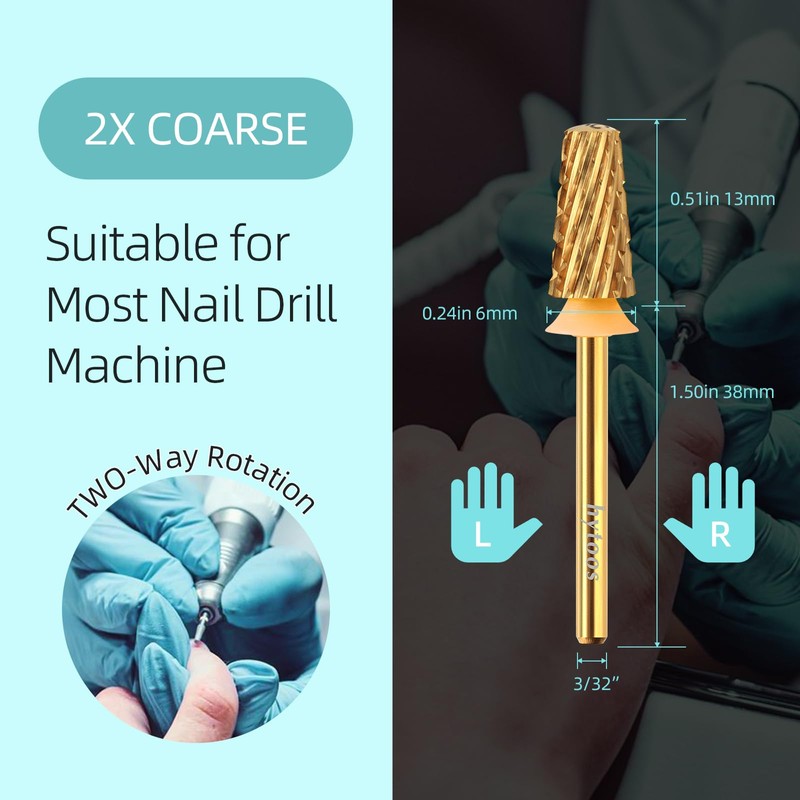 HYTOOS Safety Nail Drill Bits,Titanium Coating Smooth Top Tapered, 3/32 Carbide Nails Bit, Two-way Rotate for Both Hand, Manicure Drills Accessories Remove Thick Gel Tool (2XC, titanium)