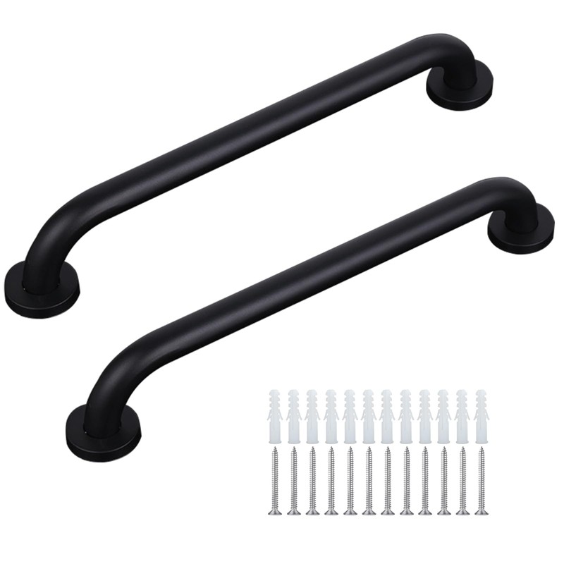 - What you get: 2 matte black shower grab bar 12 inches/30cm long, each package also provides you with the matching screws needed for installation. You can buy with confidence.