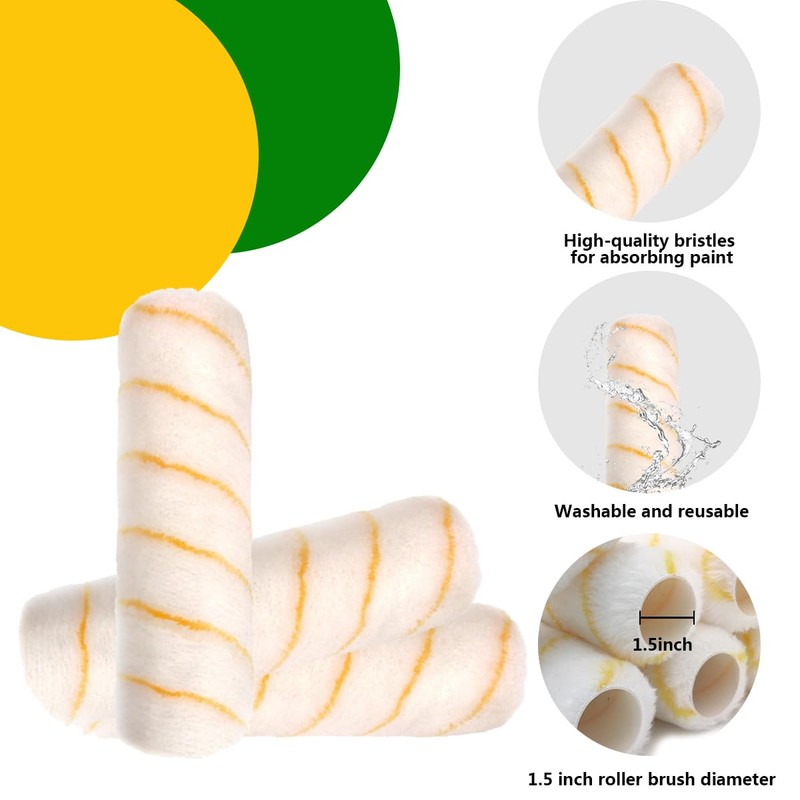 - Premium Material for Superior Performance: Crafted from high-quality polyester, these roller paint brush covers boast exceptional paint absorption and release, minimizing drips, splatters, and wasted paint. Enjoy a smooth, even finish on every stroke.