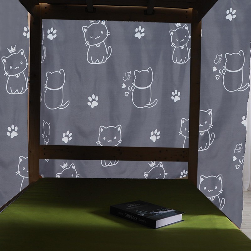 Hyuyikuwol Cute Bottom Bunk Bed Curtain Student Dormitory Blackout Cloth Mosquito Nets Bedding Tent Bed Canopy Single Sleeper, Cat Pattern