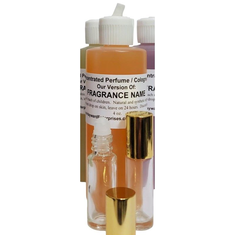- Price is for 1 Bottle of Pure Perfume Oil in a Large 4 oz. (120 ml) Plastic Squeeze Bottle with Flip-up, Pour Spout cap. Includes 2 empty, refillable, 1/6 oz. roll-on bottles which are a great pocket or travel size.