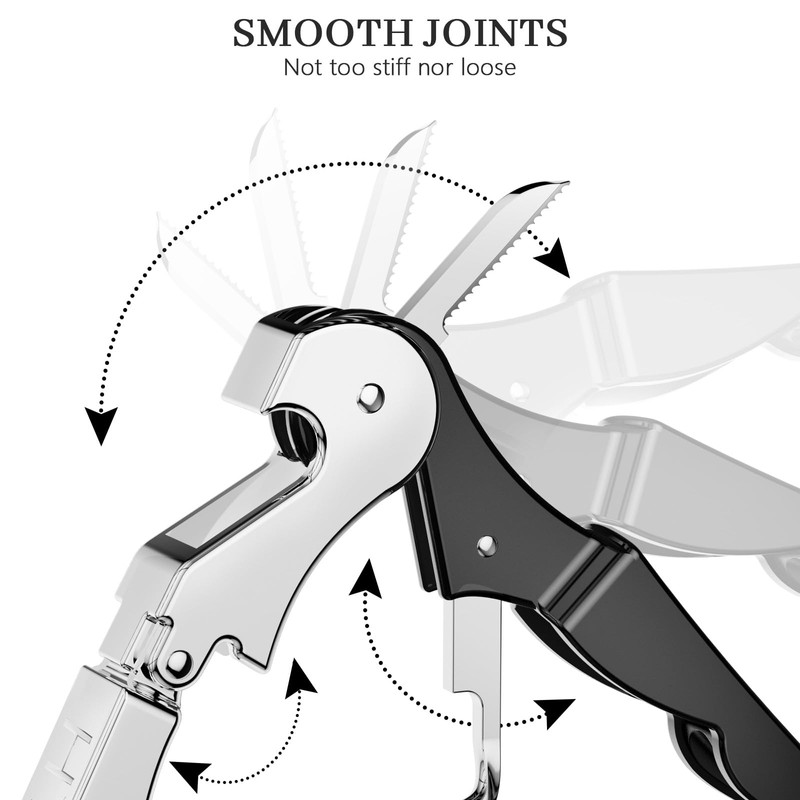 - Multitool Wine Opener: Classical two-stage opening system with hinge help to pull the cork out with little effort; Built-in bottle opener opens bottle of the beer; Foldable foil cutter neatly cut the foil away.