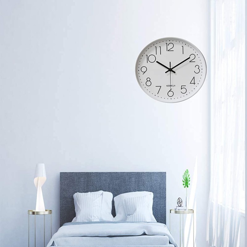 HZDHCLH Wall Clock, Stylish, Continuous Second Hand, Silent, Wall Clock... (White on White)