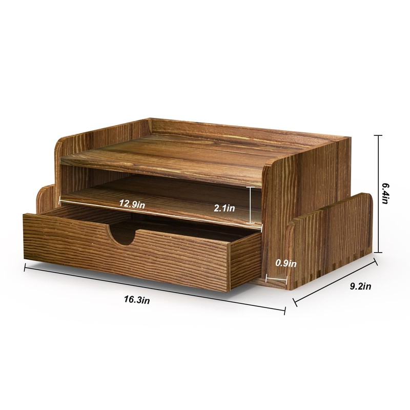 - đăVERSATILE USEă: This small desk organizer with drawers feature a rustic burnt wood design that adds a touch of natural elegance and complements a variety of decors, perfect for desktop, personal workspace use in the office, classroom, cubicle, dorm room or at home. You can customise the configuration to suit your needs.