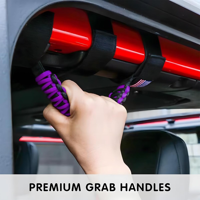 HZEL 2PCS Roll Bar Grab Handles, Oxford Cloth Upgrade Metal Buckle Paracord Grip Handles, Durable and Strong Car Accessories, Compatible with Wrangler JL, JLU, JT, JK, JKU, TJ, LJ and YJ (Purple)