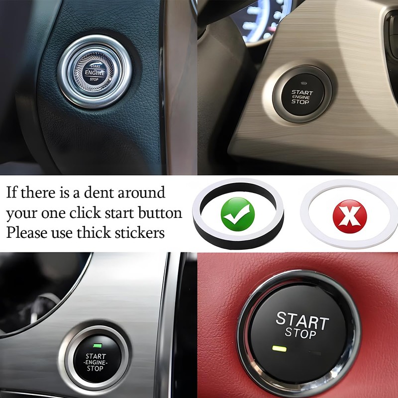 • Wide Application: Our car push start button cover measures 1.73 x 1.42 inches. This Our car push start button cover is compatible with the majority of vehicle models on the market. Whether it's a sedan, SUV, truck, or other vehicle type, it can be easily installed. The universal design allows car users to upgrade their interior without worrying about compatibility issues.