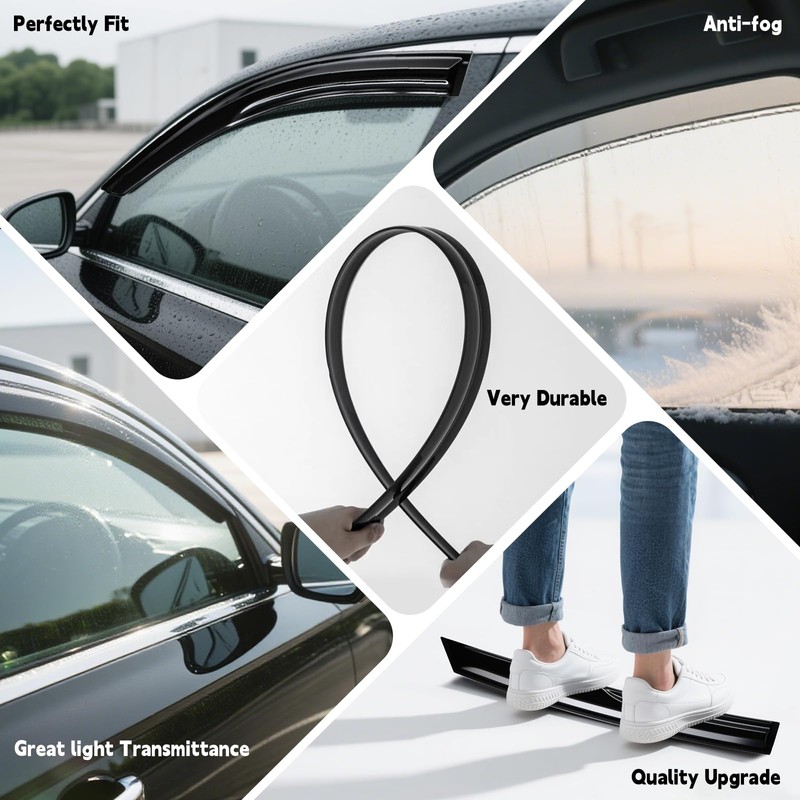 • FUNCTIONAL BENEFITS:1.Allows fresh air circulation while keeping rain out.2.Reduces interior heat build-up during hot weather.3.Helps defog windows during rainy days for better visibility