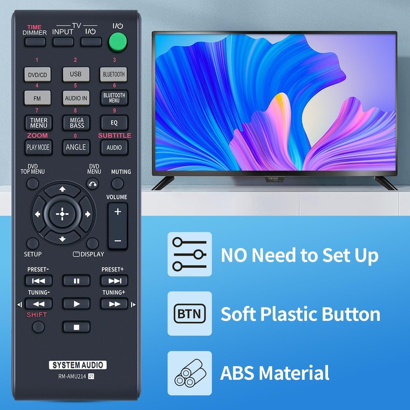 HZIME Universal Remote Control RM-AMU214 Compatible with Sony SYSTEM AUDIO CMT-SBT40D HCD-SBT40D