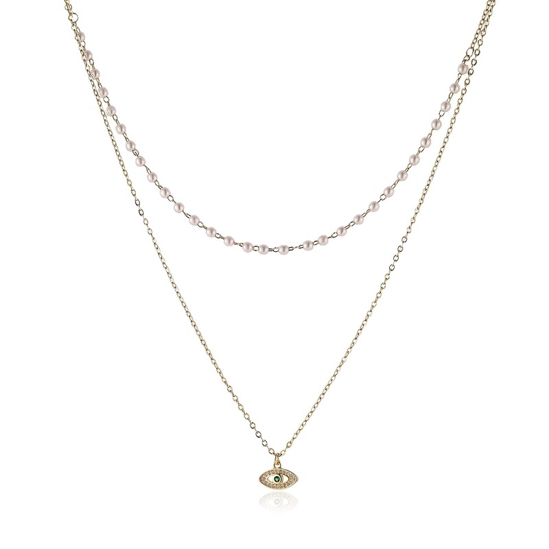 Elevate your style with the gold layered Evil Eye necklace – a timeless statement of grace and beauty.