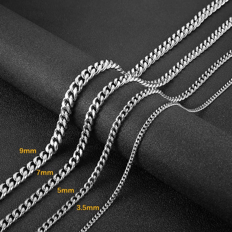 - Sizes: Our Cuban chain comes in various lengths ranging from 16”/18”/20”/22”/24”/26”/28”/30”, and widths available in 3.5mm/5mm/7mm/9mm, colors available in silver/gold/black, so you can choose the perfect size to suit your personal style and preference.