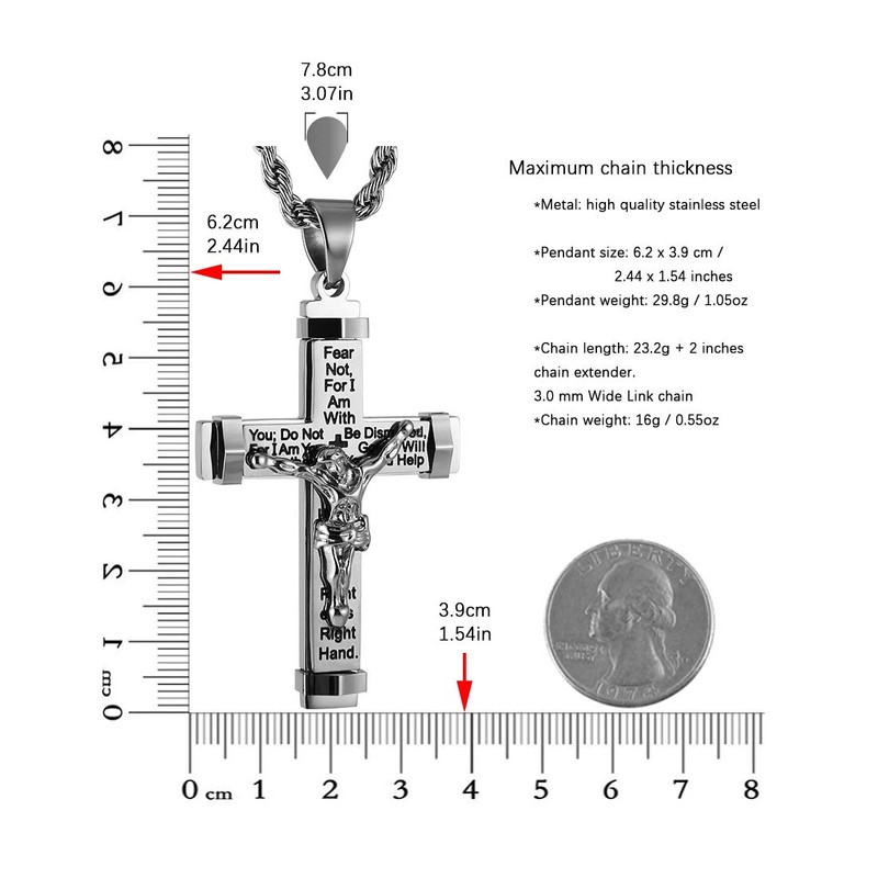 HZMAN Men's Crucifix Stainless Steel Cross Lord's Prayer Pendant Necklace with 20" 24" 28" Rope Chain.