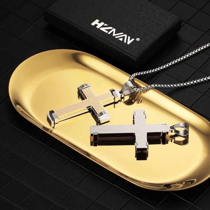 HZMAN Stainless Steel Men's Large Cross Necklace Lord's Prayer Pendant, Stainless Steel, No Gemstone