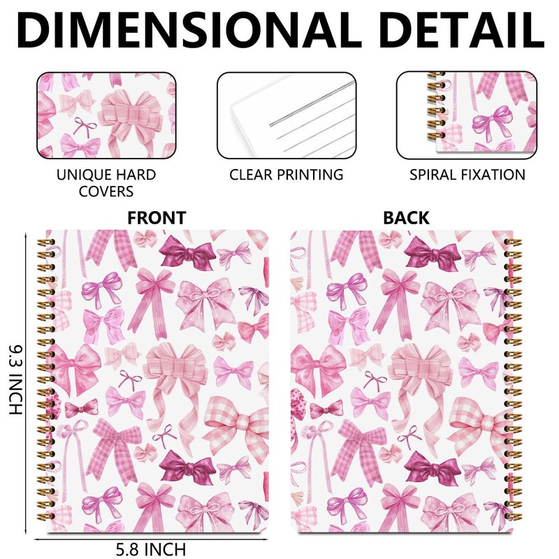 HZMLYDJ 2Pcs Spiral Notebook, Pink Bow College Ruled Spiral Notebook, 160 Pages Hardcover Notebooks Journals for Writing Travel Business Office, Cute Pink Aesthetic Notebooks for Women
