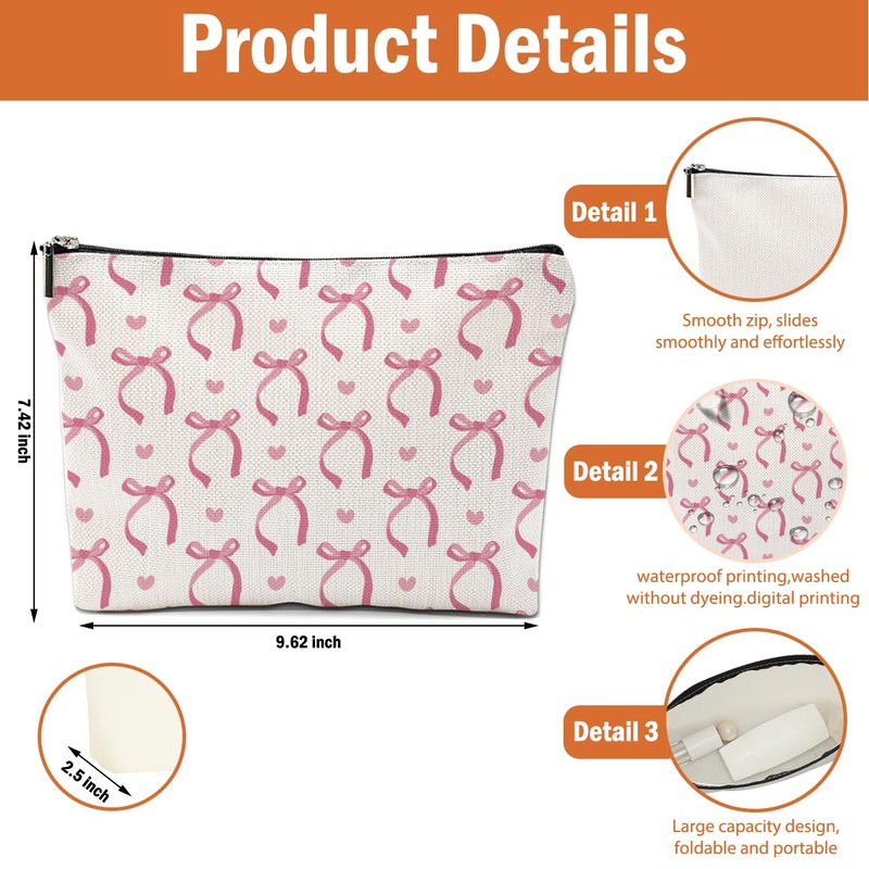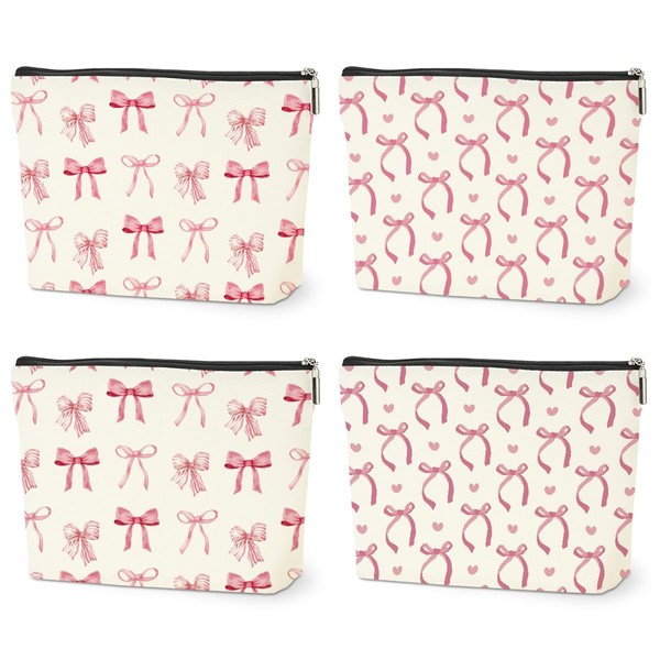 HZMLYDJ 4PCS Pink Bow Makeup Bag, Coquette Preppy Cosmetic Bags Gifts for Women Girls Pink Trendy Toiletry Bag Best Birthday Christmas Gifts for Girls Women Sister Travel Bags