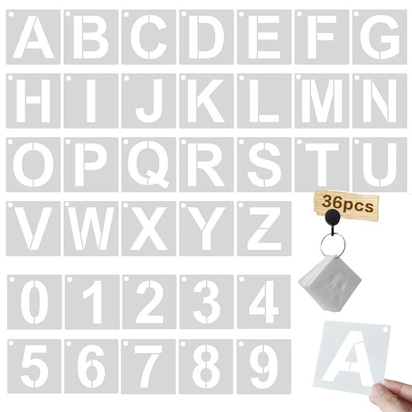 - PACKAGE & SIZE -- 1Pcs binder ring and 36 Pcs Letter Templates (26 pcs letters A-Z, 10 pcs numbers 0-9). Each stencil is 2" H x 2" L (Font Height: 1"). These will give you endless possibilities of customized words to create any DIY art projects as you like.