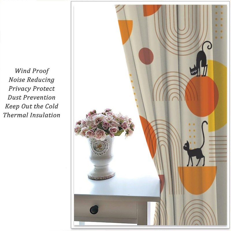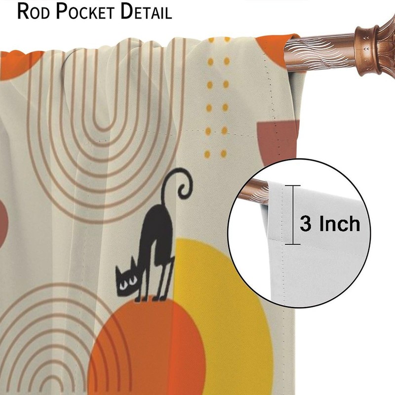 HZOHNAGO Mid Century Black Cat Curtains Boho Abstract Geometric 1950s 60s Style Pattern Blackout Print Rod Pocket Window Drapes for Bedroom Living Room 42x45in