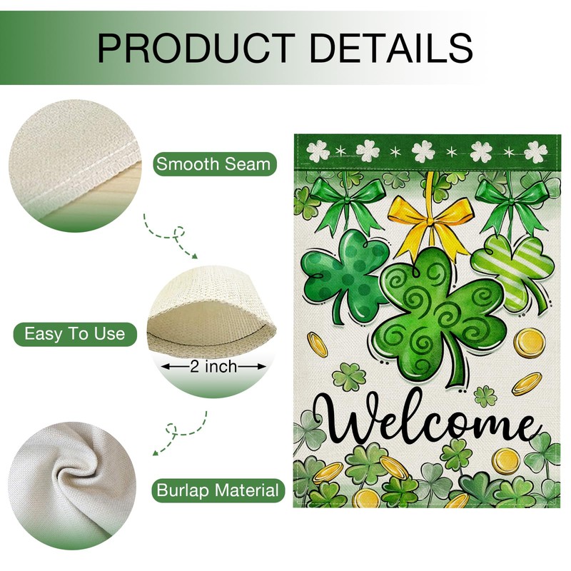 - Premium Quality: The Saint Patrick's Day garden flags with shamrock, clover, gold coins, bow patterns are printed by premium colorfast permanent dye to make the farmhouse decor colorful, vibrant, bright and creative which are suitable for St. Paddy's Day