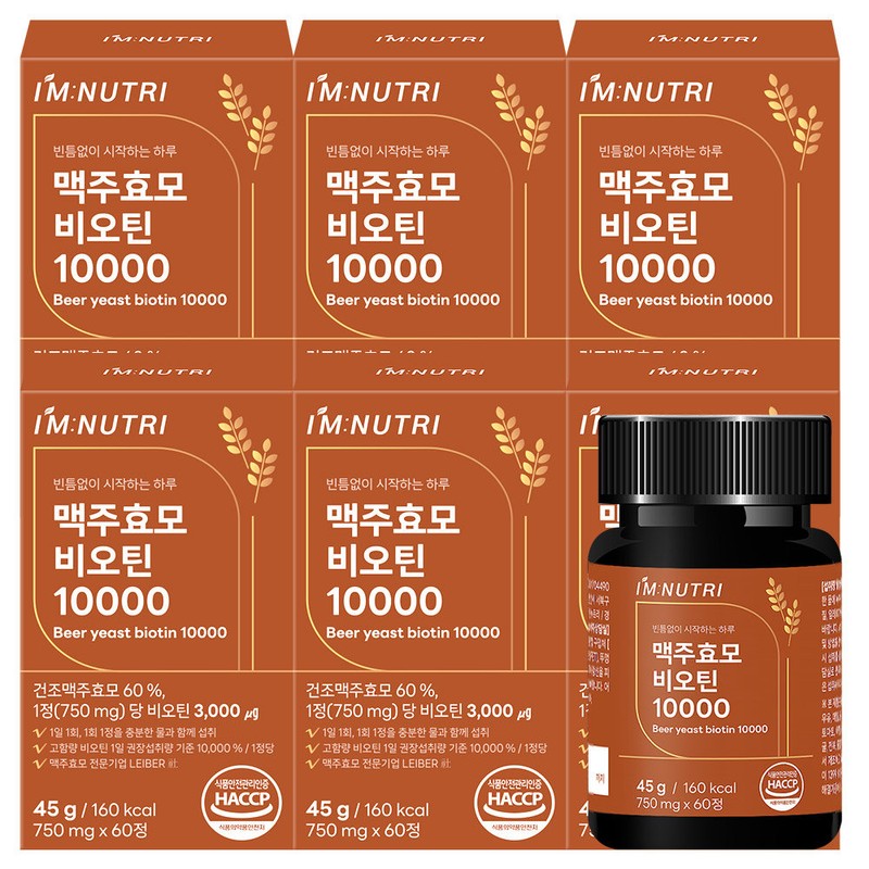 I'm Nutri Brewer's Yeast Biotin 10000 60 tablets 6 boxes / 아임뉴트리 맥주효모 비오틴 10000 60정 6박스