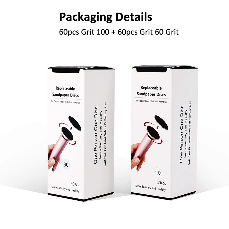 • Package includes: 60PCS replacement sandpaper discs (Super Coarse 60 Grit) , 60PCS replacement sandpaper discs (Smooth 100 Grit).