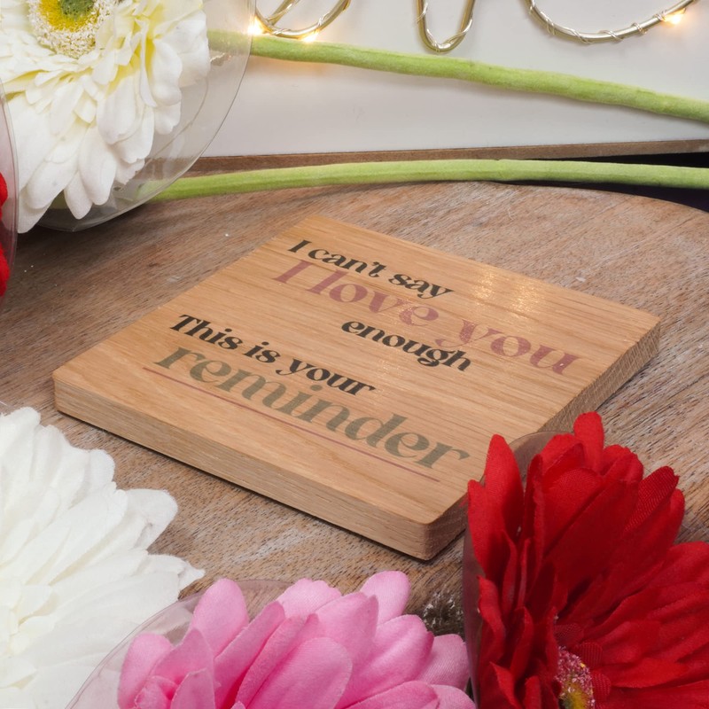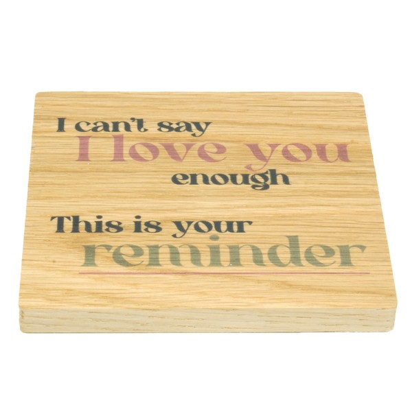 - The Coaster reads: I Can’t Say I Love You Enough. This is your Reminder.