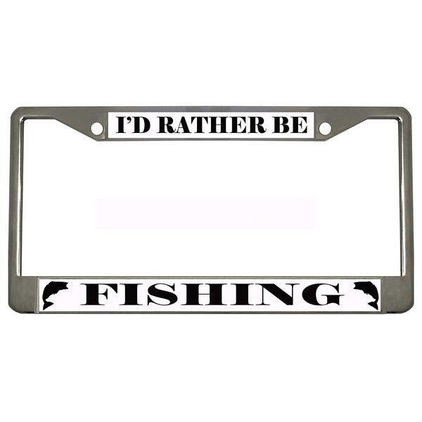 I'd Rather BE Fishing Chrome Metal Auto License Plate Frame Car Tag Holder